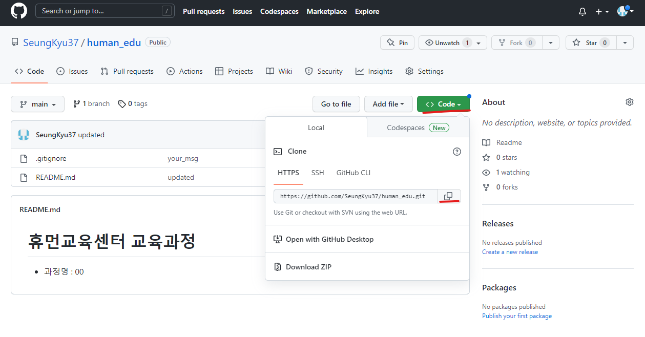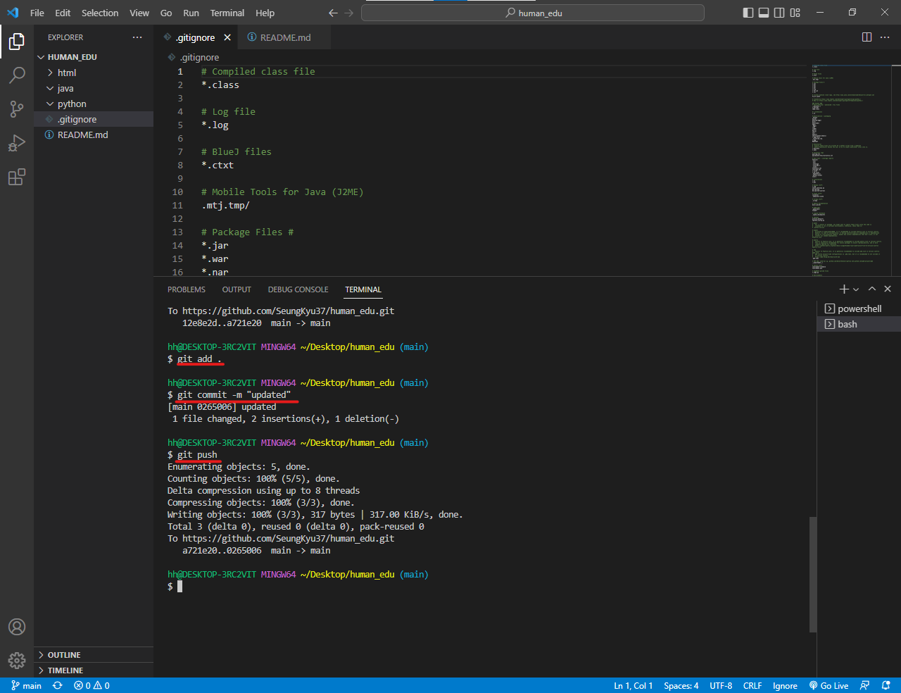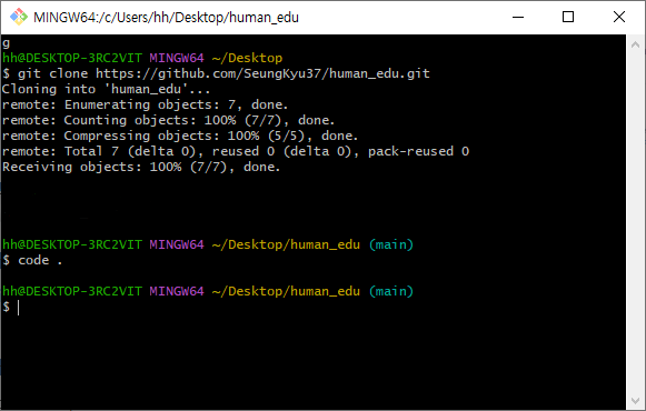 바탕 화면 마우스 우 클릭 Git Bash Here 클릭