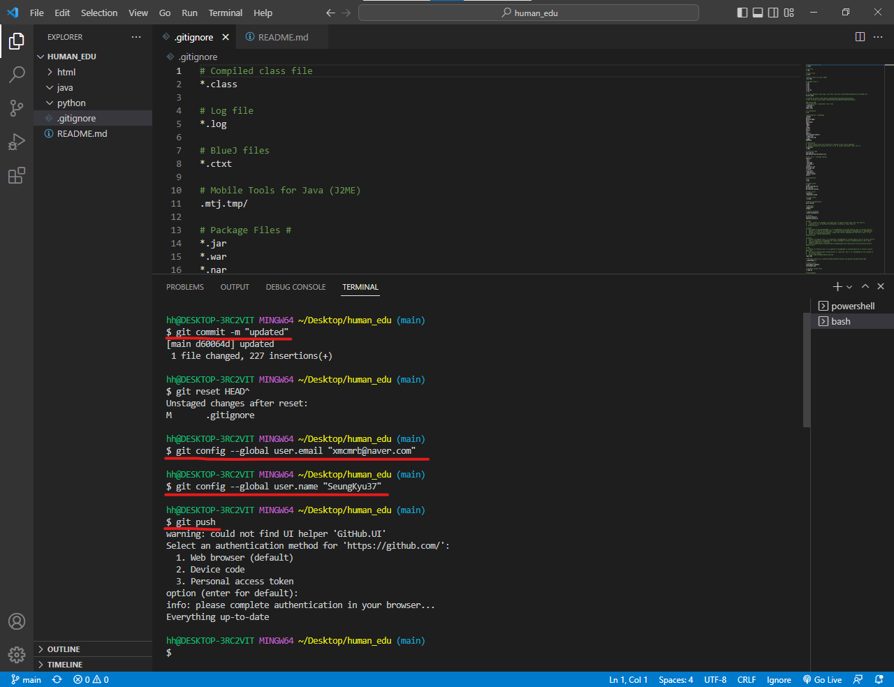 .gitignore에 gitignore.io에서 가져온 내용 뒷 부분에 복사