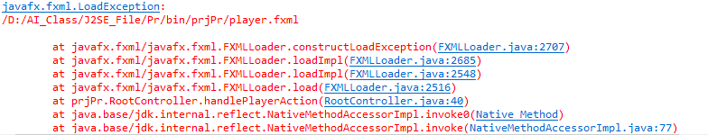 FXMLLoader fxmlLoader = new FXMLLoader(getClass().getResource("player.fxml"));