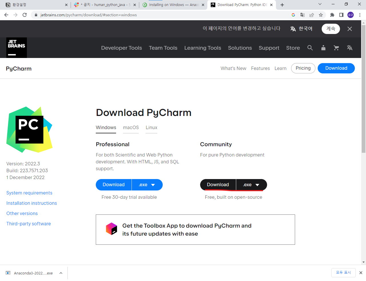 | [Python] 파이썬 설치하기 - ANACONDA (0) | 2022.12.23 |