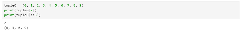 앞서 파이썬 documentation에 따르면 튜플도 시퀀스 데이터이기 때문에 인덱싱과 슬라이싱이 가능하다.
