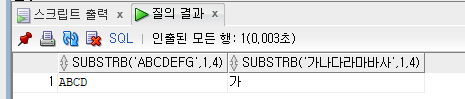 select substrb('ABCDEFG',1,4), substrb('가나다라마바사',1,4) from dual;