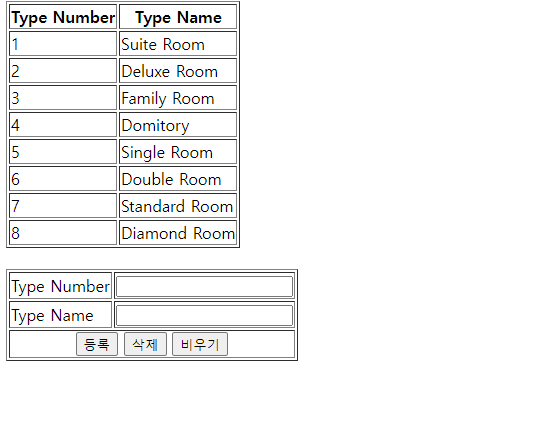 - Type Name에 방 종류 이름을 입력하면 기존 테이블에 다음 번호와 이름이 입력된다.