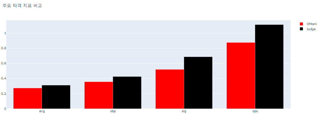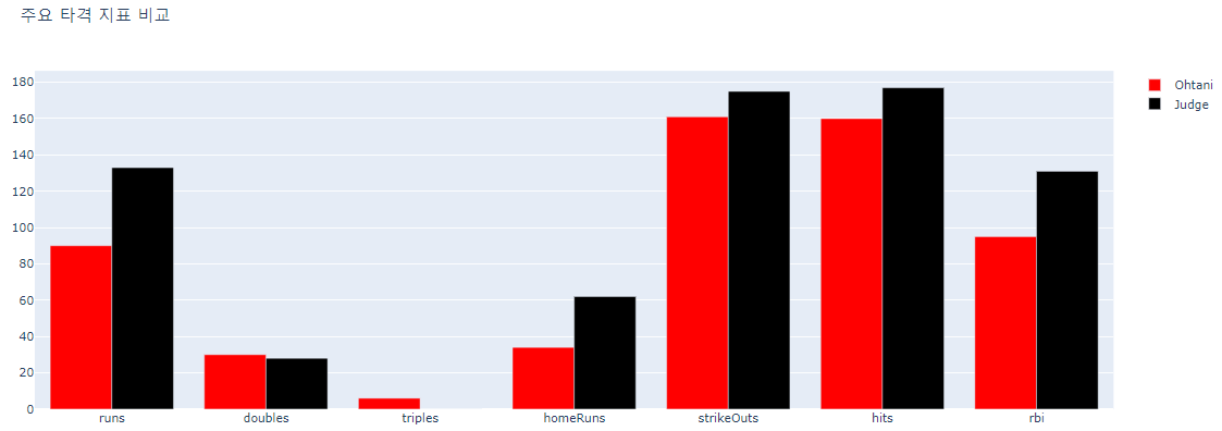 [Python] plotly를 이용해 오타니, 저지 2022시즌 타격 성적 비교 그래프 본문