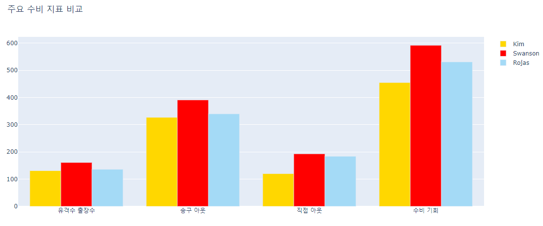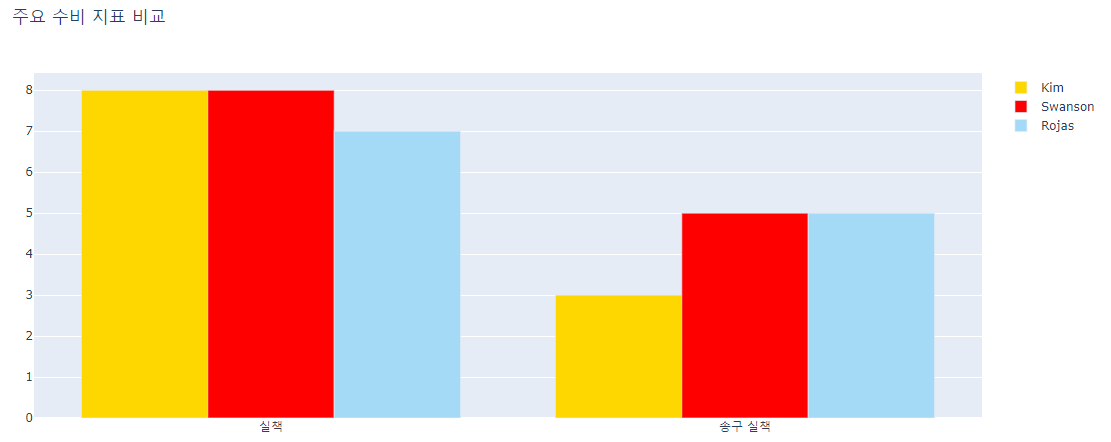 layout = go.Layout(title='주요 수비 지표 비교')