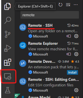 (1) Extensions에서 Remote - SSH 설치하면 하단에 Remote Explore가 보여진다.
