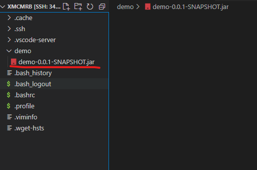 7) 로컬 pc에서 원격 VM에 이동 후 배포(.jar)
