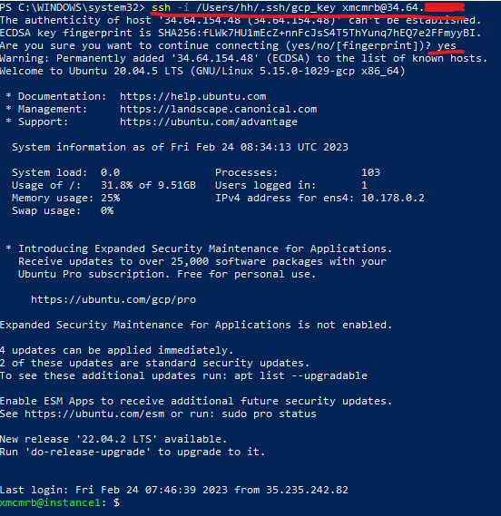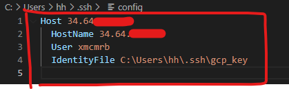 ssh -i /Users/hh/.ssh/gcp_key xmcmrb@34.64.***.***
