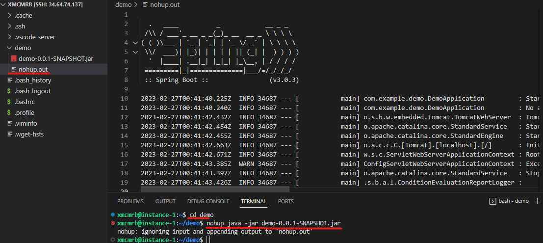 $ nohup java -jar demo-0.0.1-SNAPSHOT.jar