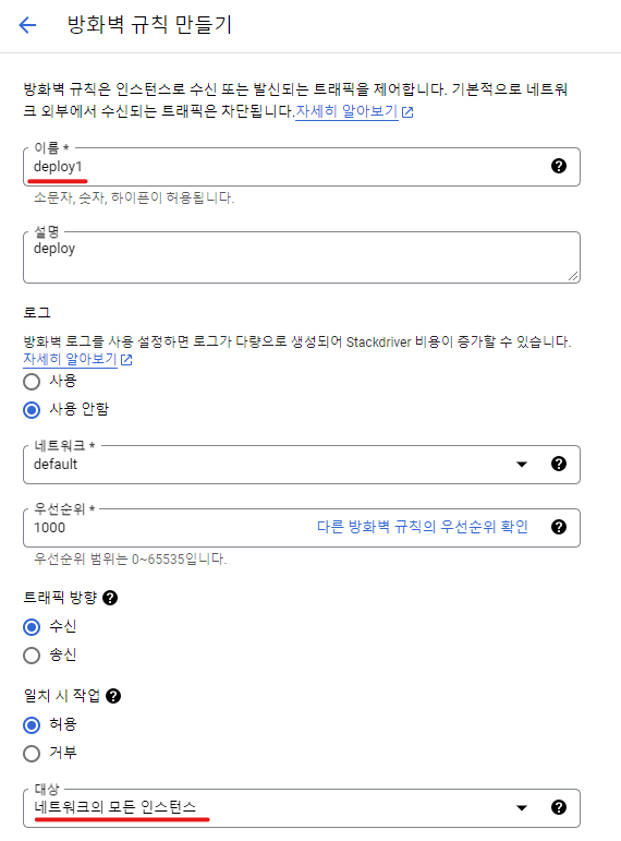 방벽 규칙을 다음과 같이 설정해준다.