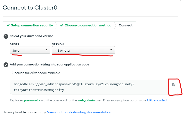 - Java를 선택하고 코드를 복사해 놓습니다.(application.properties에 사용 예정)