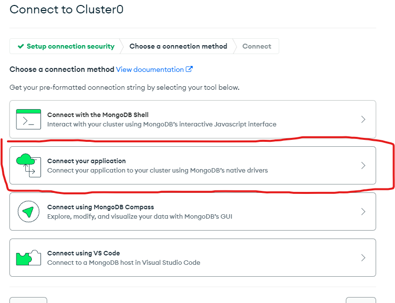 - Connect your application 선택