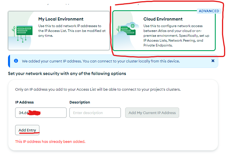- 로컬 PC라면 ADD My Current IP Address를 눌러 로컬 PC의 IP를 등록하고