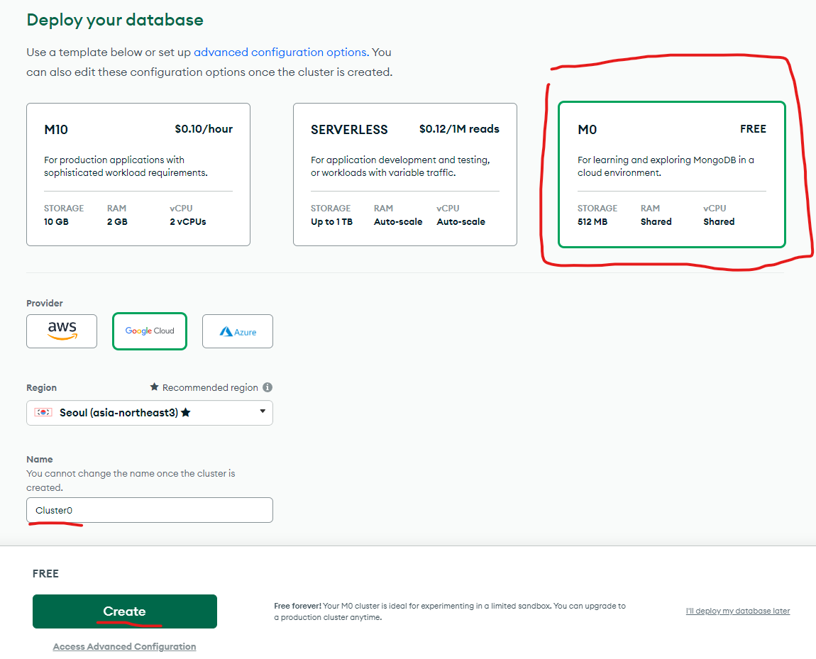 - 서버는 Google Cloud - Seoul로 선택
