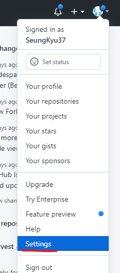 Settings에 들어간다.