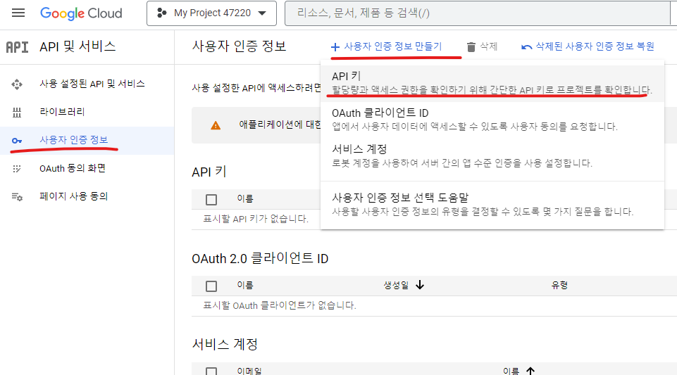 Youtube API key 발급 받기 본문